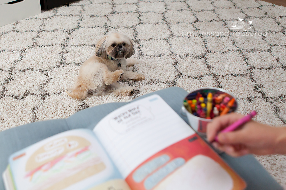 Doodle Your Day is a great way to get their brains thinking and drawing things they would never have thought to on their own. This book combines journaling, art, and even the occasional thing to cut out and paste, or find around the house and include in the book – such as “find an old key and attach it here, then draw what you wish it could open”. So fun and creative! There is a spot for every day of the year – so doodling can be a daily activity. Boo has been having fun with it this summer, but I also plan to have it be part of her daily homeschool plans.